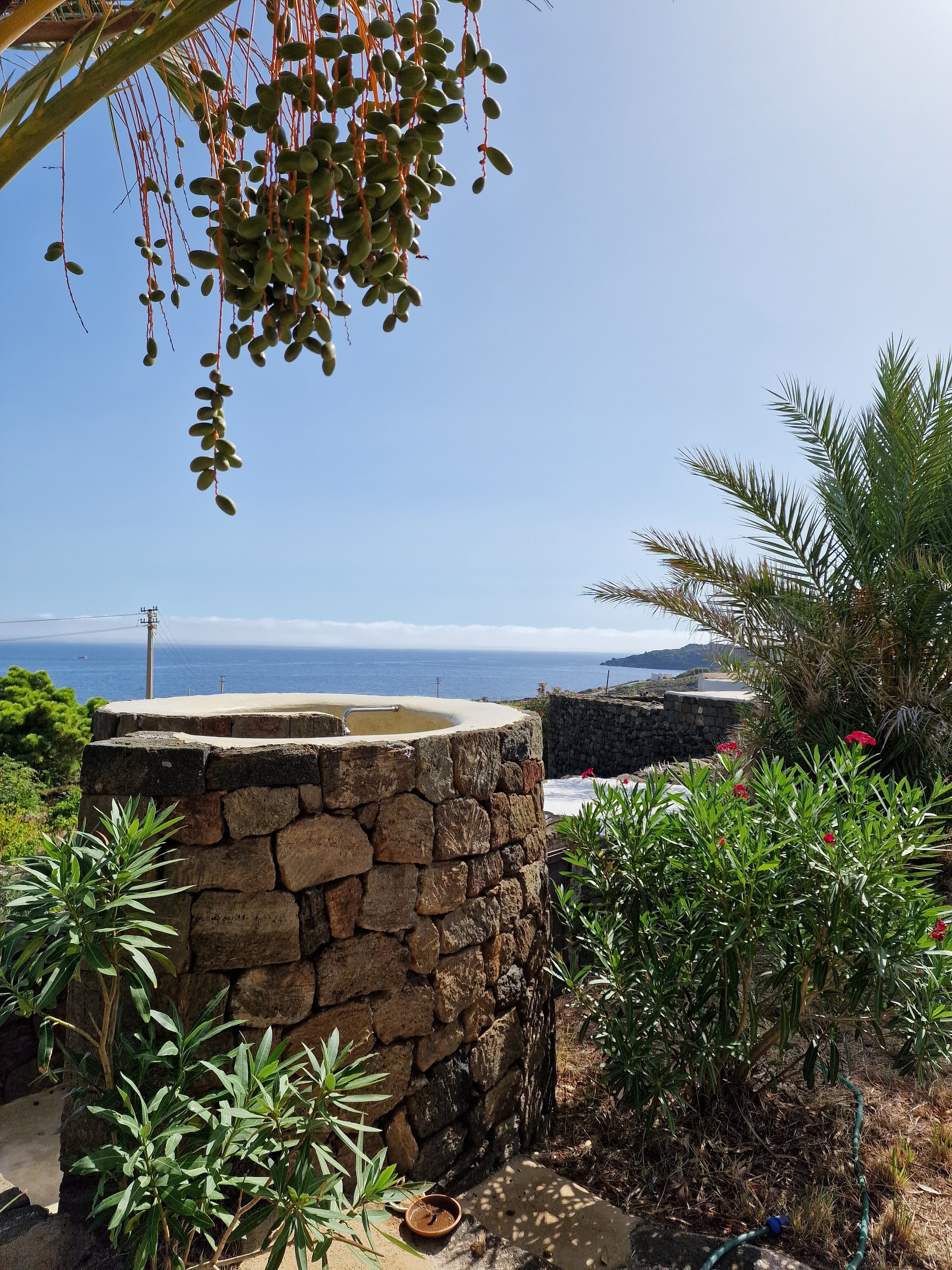 Potrai rilassarti all’ombra del cannucciato, sorseggiando un buon bicchiere di passito ed ammirando il blu intenso del mare e gli affascinanti tramonti della nostra isola.